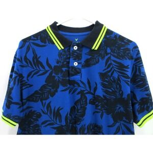 AMERICAN EAGLE SHORT SLEEVE POLO SHIRT Men's Size Medium BLUE TROPICAL FLORAL