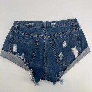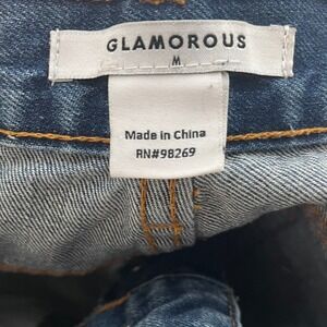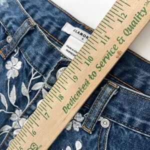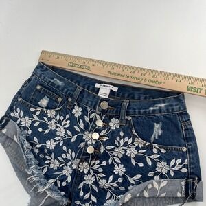 Glamorous Women's Blue Denim Shorts Floral Embroidery Distressed Cuffed Size M