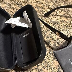 Stylish Dolce & Gabbana sunglasses with a sleek black frame and gold accents. Perfect for adding a touch of elegance to any outfit.