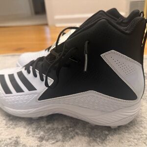 Brand new with tags never been worn. Dominate every snap. Designed with extra width for a comfortable fit, the mid-cut men's Adidas Freak Mid MD Wide Football Cleats have a synthetic upper that provides the ankle support and locked-down fit you need to win your one-on-one battle at the line of scrimmage. The cleated outsole provides lightweight traction for precise footwork.