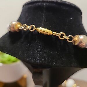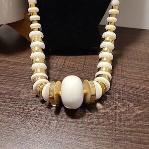 Unbranded White Beads w/Gold Tone Spacer Necklace Ladies Party Office Vintage