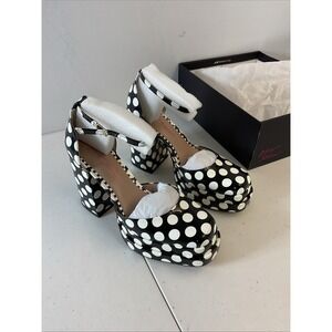 Betsey JOHNSON Chunky Black Polka dot platform heel rockabilly Retro pinup sz 10