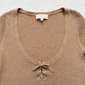 Sezane Soizic Tie Front Merino Wool Blend Jumper, Camel