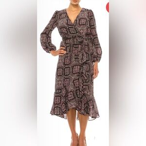 Elegant satchel with croc texture. Features black, brown, and cream panels. Gold chain detail enhances style. Strap no included