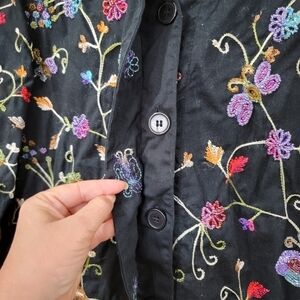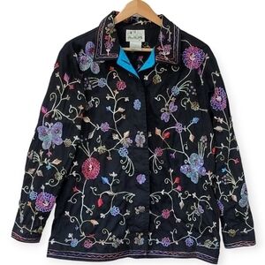 Vintage black button down top with all over intricate beading. Heavily beaded butterflies and flowers.