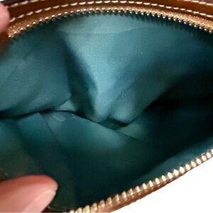 • Interior: Teal satin lining, zip pocket, slip pockets