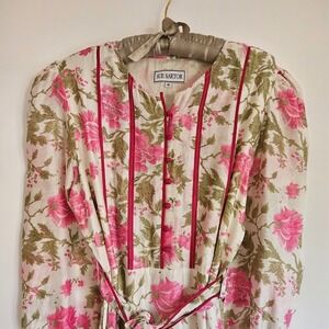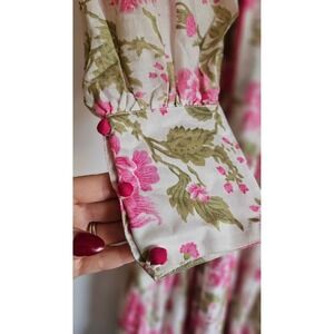 Sue Sartor Pink Floral Flounce Dress Cotton Midi Prairie Style Sz M