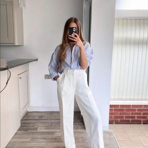 Zara Blue and White Striped Button Down Shirt