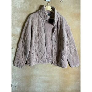 Wild Fable Quilted Jacket Dusty Rose Pink Full Zip Stand Collar Oversized XXL