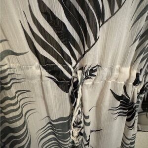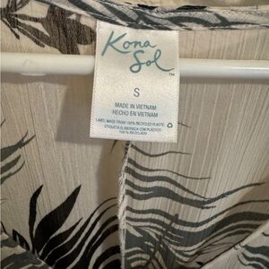 Kona Sol Palm Leaf Kaftan Swim Cover Up V-Neck Drawstring Waist White Green S