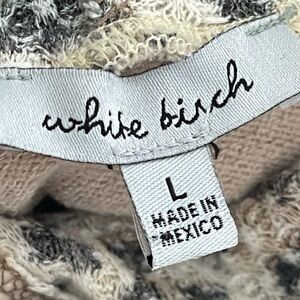 Soft textured knit fabric by White Birch. This stylish hooded sweatshirt dress features a cozy beige material accented by a bold leopard print on the hood and front pocket, ideal for casual wear.