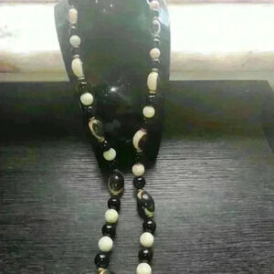Vintage large beaded cream gold and black long women's necklace