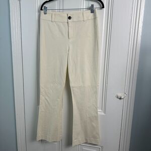 Club Monaco Pants Womens 6 White Flare Boho Disco Zip Fly High Rise Crop Trouser