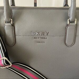 BNWT DKNY Erin Leather Crossbody Satchel W Cellphone Pocket Grey