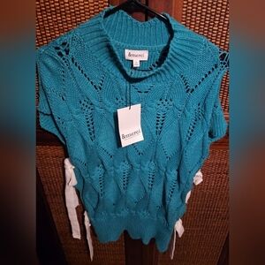 &Merci NWT Womens Blue Crew Neck Sweater with Open-Knit Pattern