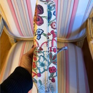 Chic floral women's bag with a vibrant design. Carry crossbody or by top handle. Size is 6” x 9”