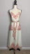 This dress is a charming and romantic midi-length piece featuring a classic toile-inspired floral print in soft terracotta against an ivory background. The design includes delicate adjustable spaghetti straps, and a flattering V-neckline trimmed with subtle scalloped lace detailing for a feminine touch. A row of decorative fabric-covered buttons runs down the front, adding vintage appeal, while a matching self-tie waist belt cinches the waist for a tailored silhouette. The skirt flares gently for ease of movement and comfort.
