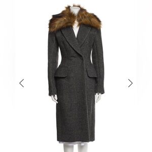 Elevate your wardrobe with this sophisticated charcoal trench coat. Featuring a luxurious faux fur collar, this coat offers both style and warmth. Perfect for any occasion.