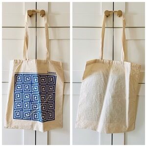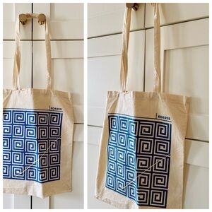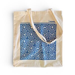 KORRES Cotton Canvas Blue Greek Key Pattern Book Bag Tote