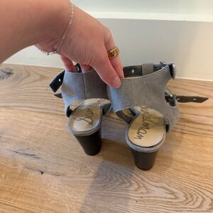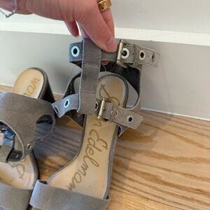 Sam Edelman Women's Eyda Gray Suede Dress Strappy Sandal Sz 8 Chunky Heel Punk