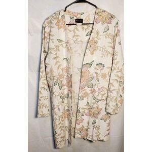 Stuart Alan Women's Flax Blend Open Mid Length Jacket Floral Sz 16