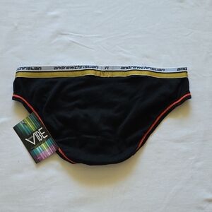 Andrew Christian Black Briefs with Gold and Red Accents