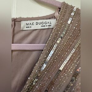 Elegant Mac Duggal gown adorned with shimmering sequins. Ideal for glamorous events.