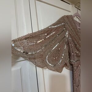 Please note due to the intricate nature of the gown, it's possible there could be a slight flaw loose string, missing bead or sequin, etc.) After close review, I'm not finding anything major.