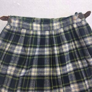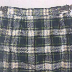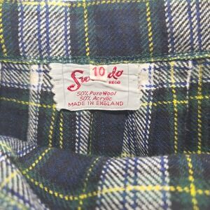 Vintage Steerdo Plaid Wool Blend Kilt Skirt Green Blue Made in England Size 10