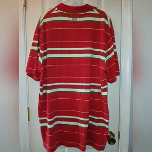 ECKO Unlimited red, green, cream striped polo style shirt