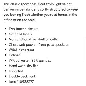 New with tags! Lightweight sport coat with stretch. Super comfortable!
