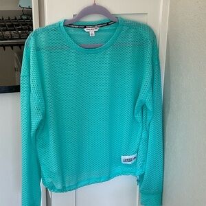 Chic aqua mesh top. Lightweight and breathable. Ideal for layering.