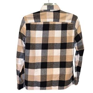 Hollister Men’s Plaid Flannel Shirt Size L Tan Black White Long Sleeve