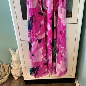 Stunning floral maxi dress in vibrant pink and purple. Perfect for any occasion.