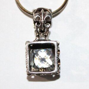 Sterling silver snake chain necklace with a pendant set with cubic zirconia.