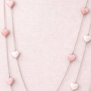 Sweet and elegant, this heart-accent necklace features delicate pink and silver heart details along a sleek silver-tone chain. The soft color palette and lightweight design make it perfect for everyday wear or layering with other favorites.