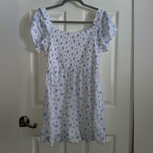 Hollister White and Blue ShortSleeve Mini Floral Dress Large