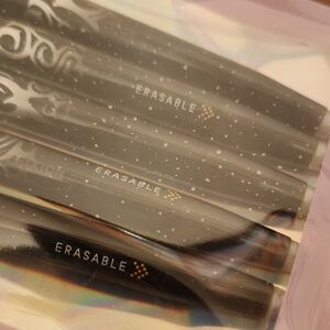 Set of 5 Pilot FriXion erasable gel pens. Sleek black design. Perfect for smooth writing.