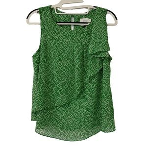 Anthropologie HD Paris Green White Sleeveless Ruffled Printed Chiffon Top Sz 2P