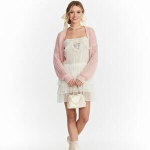 LoveShackFancy NWT Myrna Dress Ivory Silk Ruffle Lace Slip Large Mini $495
