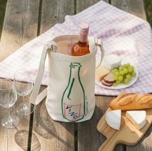 Stylish canvas wine tote featuring a colorful bottle design. Perfect for picnics and outdoor gatherings.