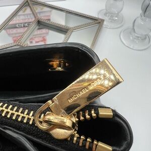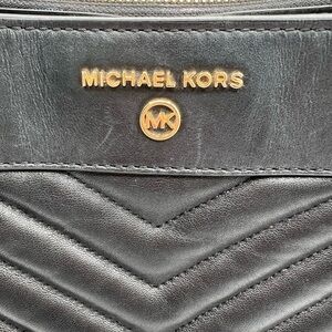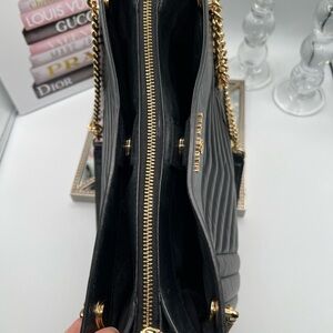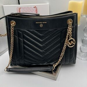 Michael Kors Black Chevron Shoulder Bag with Gold Accents