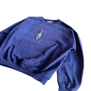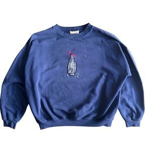 Vintage Northern Reflections crewneck sweatshirt in a deep navy blue. Features a detailed embroidered graphic at the chest with a cozy fleece-lined interior. Relaxed, classic fit typical of older Northern Reflections pieces.