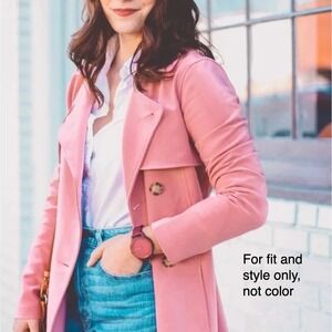 Abercrombie & Fitch drape trench coat in a beautiful terracotta/deep mauve hue. This double-breasted jacket features a classic notched lapel, storm flaps, and a matching tie belt to cinch the waist for a flattering silhouette. Crafted from a soft, mid-weight fabric with a slight stretch, it includes side pockets and a back vent for ease of movement. Very versatile, comfortable and easy to wear.