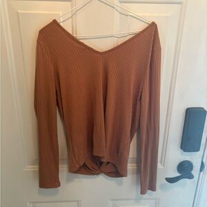 Anthropologie Love, Fire Double V neck Caramel Knit Top
