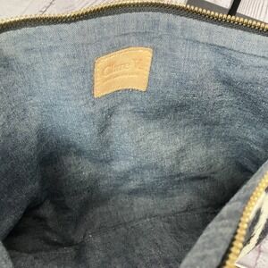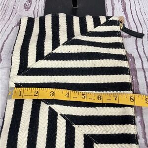 Clare V Los Angeles Striped Canvas Zip Clutch Pouch Black Cream Oversized