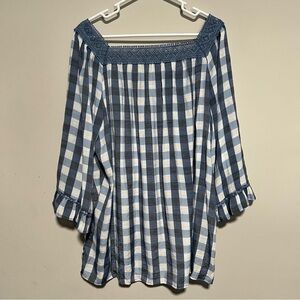 Robert Louis Plus Size Womens Size 3X Blouse Checkered Lace Neckline Boho Top