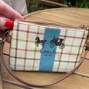 Coach Plaid Wristlet with Blue Stripe. Used.