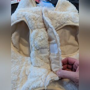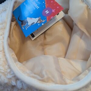 Brand New With Tags Vibrant Life Hooded Pet Jacket (Beagle, Standard Poodle) Size Medium, 20-50 lbs. Measurements in photos. Very pretty White Fleece with Coral/Red bow. No rips tears or stains. Smoke free home.