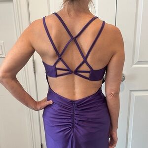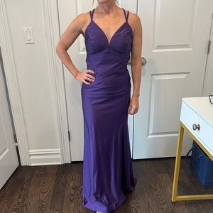 Stunning purple gown with a fitted silhouette and strappy design. Perfect for formal occasions. Size 7